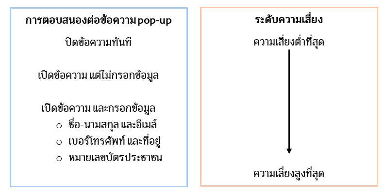 - กลุ่มที่กดเปิดข้อความ pop-up และกรอกข้อมูลส่วนบุคคลที่ระดับความอ่อนไหวแตกต่างกันไป