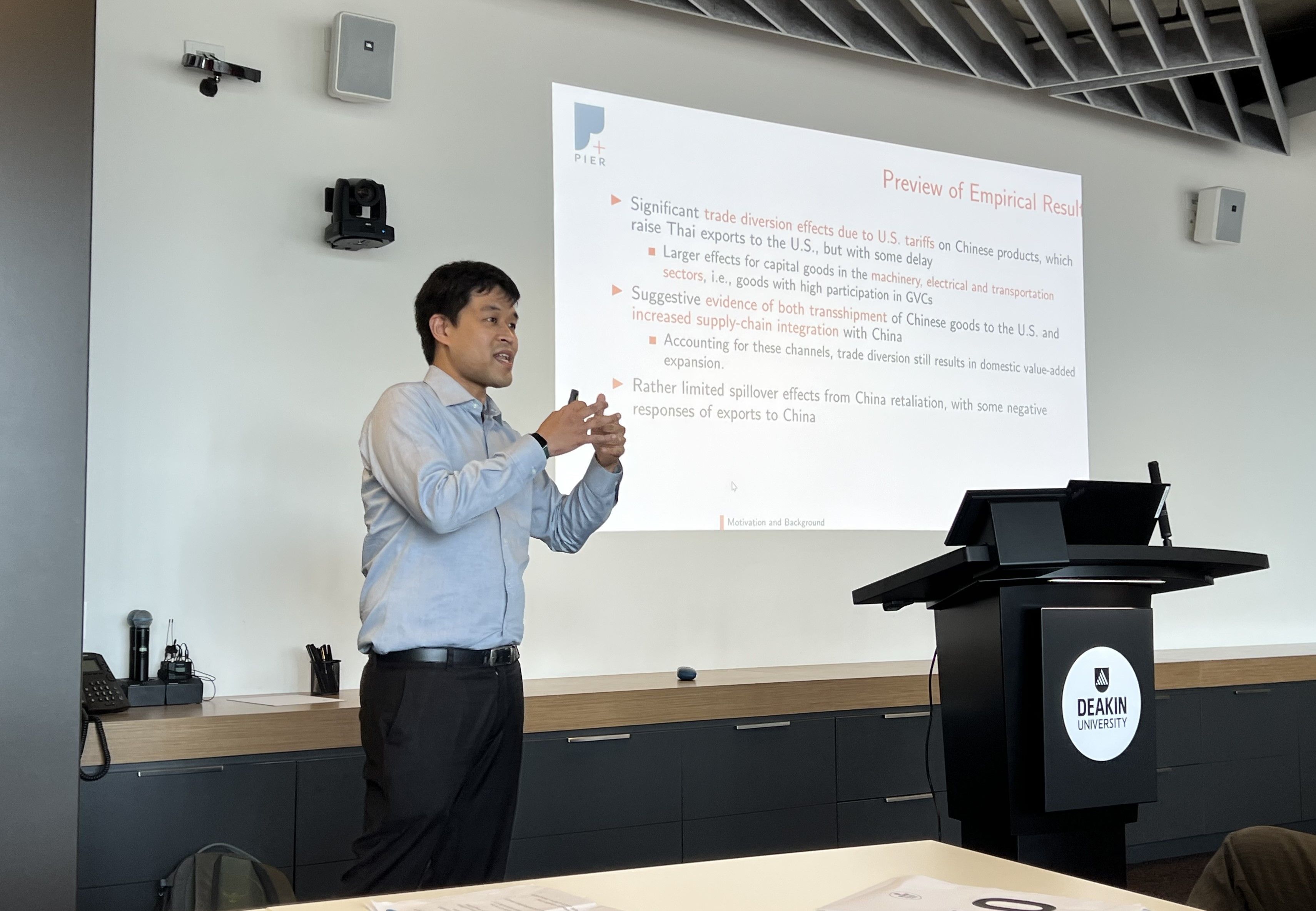 เมื่อวันที่ 20-21 มีนาคม 2569 ดร.นุวัต หนูขวัญ หัวหน้ากลุ่มงานวิจัย และ คุณเจตวัฒน์ ภัทรรังรอง นักวิจัยอาวุโสจากสถาบันวิจัยเศรษฐกิจป๋วย อึ๊งภากรณ์ (PIER) ได้เข้าร่วมนำเสนองานวิจัยในงาน 19th Australasian Trade Workshop ซึ่งจัดขึ้นที่ Deakin University ณ ประเทศออสเตรเลีย